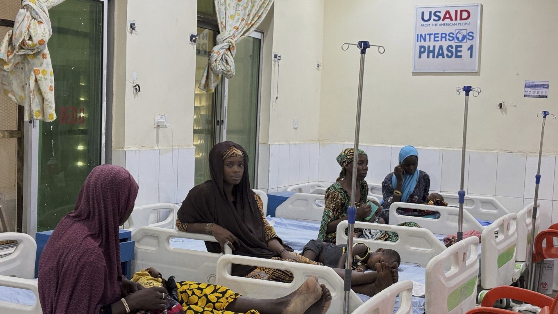 Mothers wait for their children to receive treatment at the only remaining facility providing in-patient services for malnutrition in Maiduguri, Nigeria, May 1, 2025 (AP photo by Sunday Alamba).